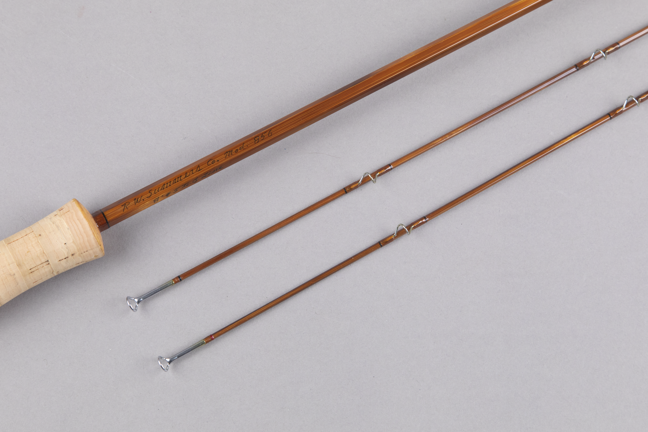 • For your consideration is a R.W. Summers Model 856. This is an 8' 6" two-piece for a 5 or 6-weight line weighing 4.75 ounces. SN 8199. This rod has been fished sparingly or only lawn cast. Original owner. Correspondence with Bob during the transaction conveys with the rod.