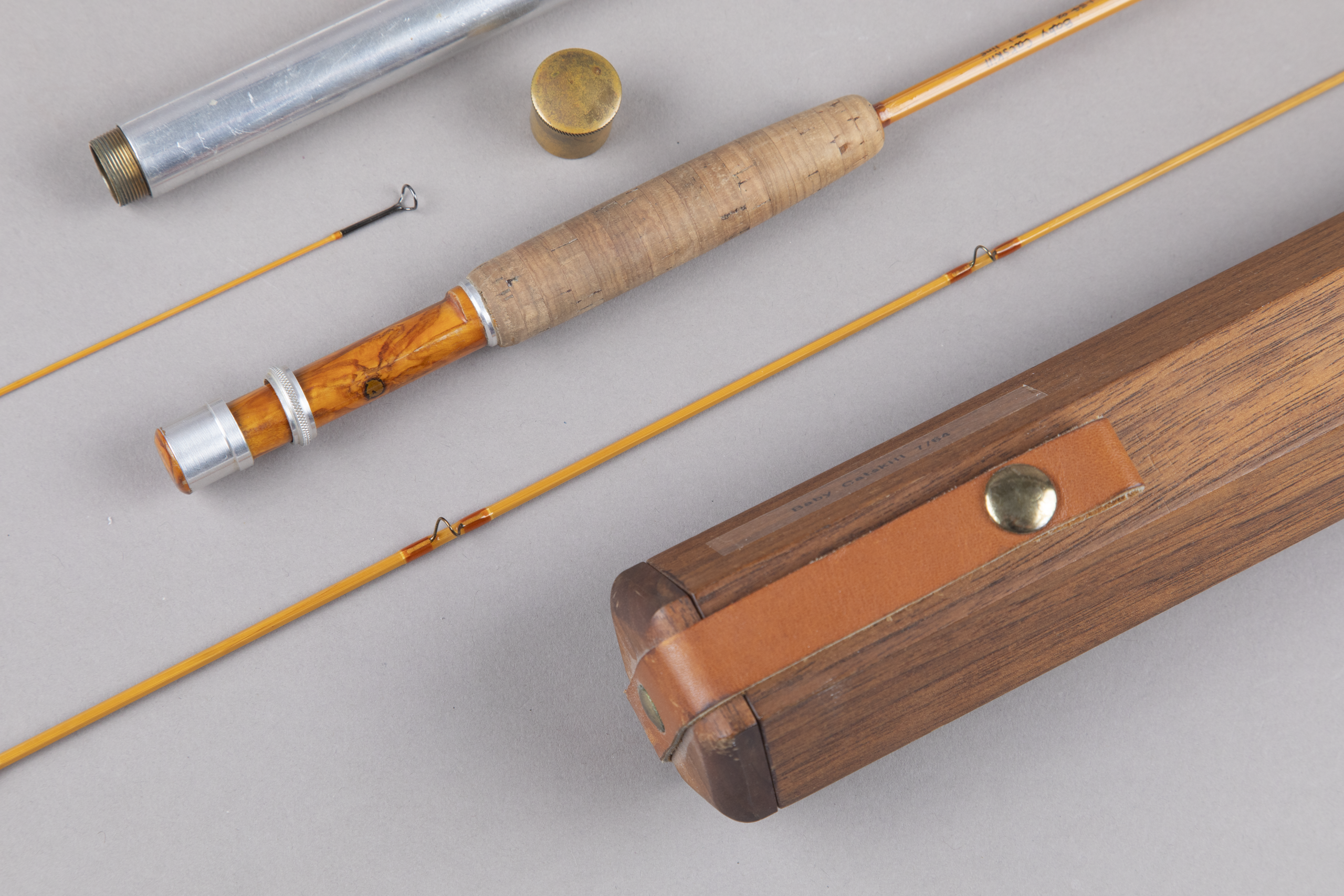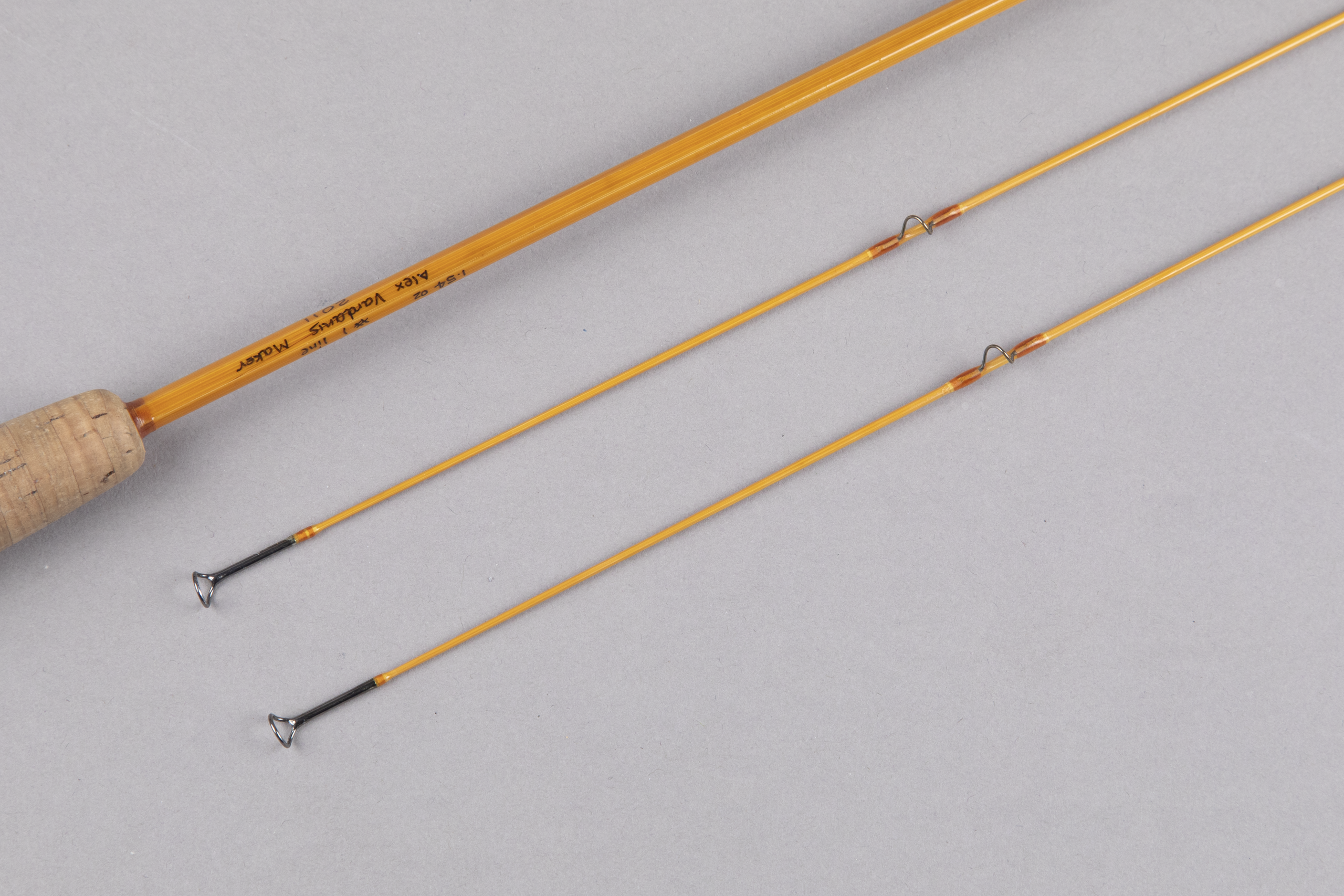 • For your consideration is an Alex Vardanis Baby Catskill bamboo fly rod. This is a 6' 0" two-piece for a 1 to 2-weight line weighing 1.55 oz. The tips mic at 0.0465. This was one of Alex's personal rods.