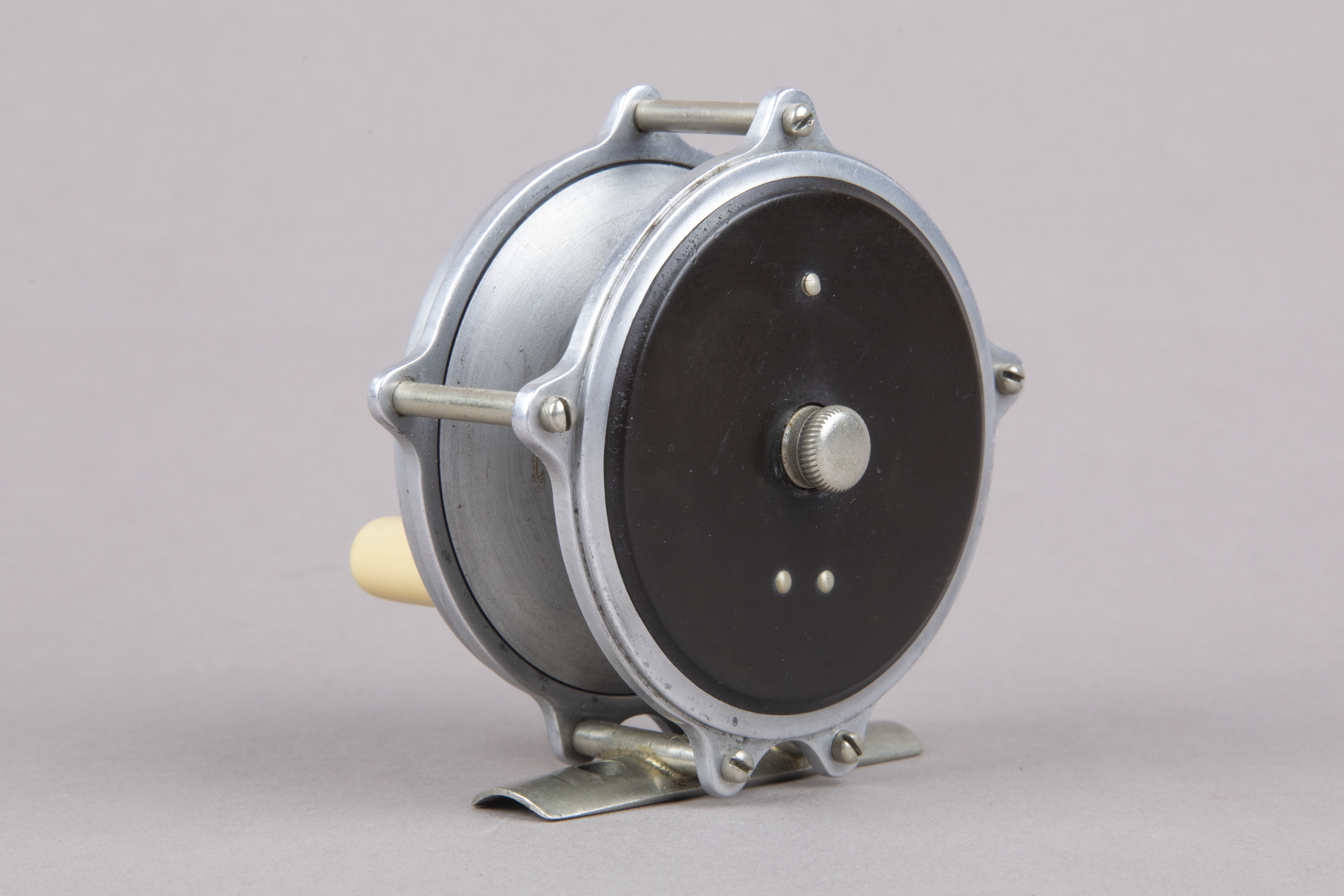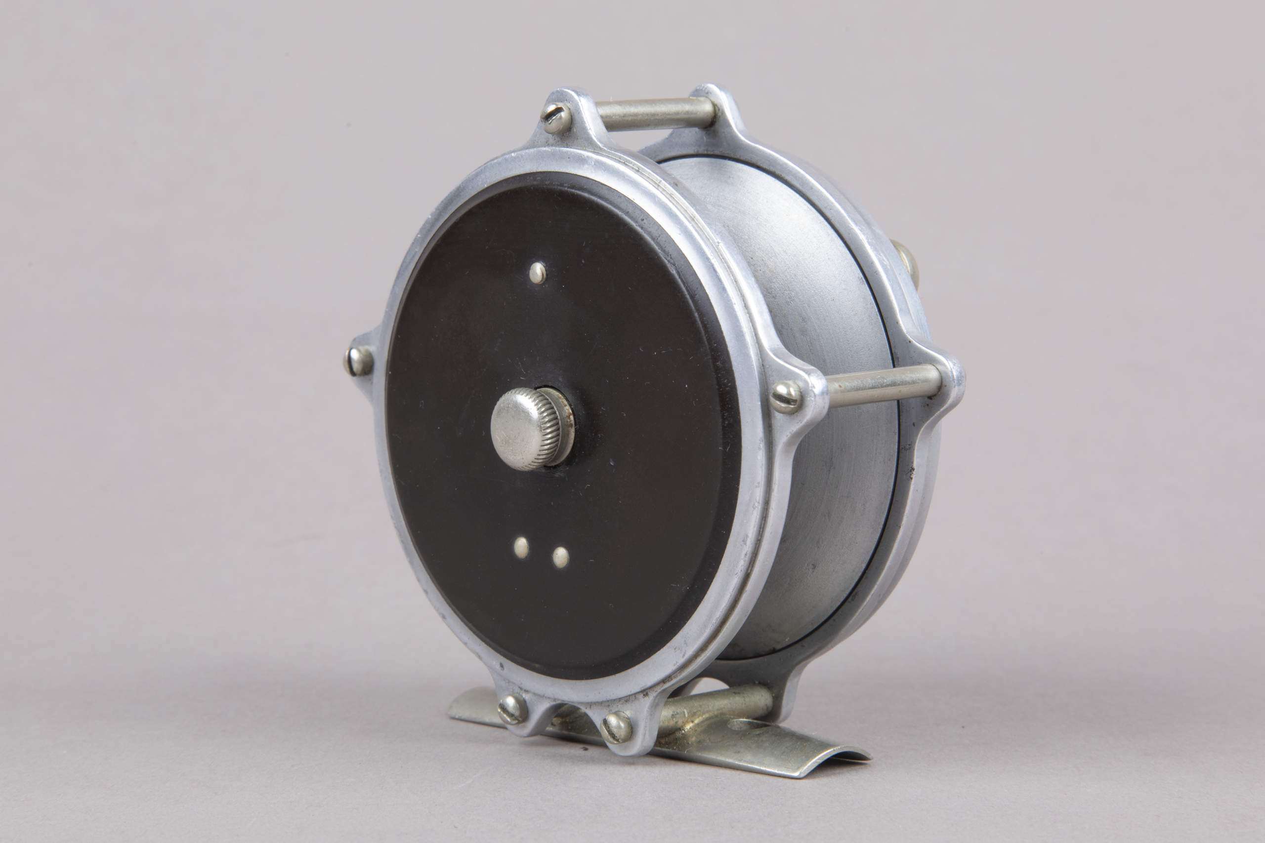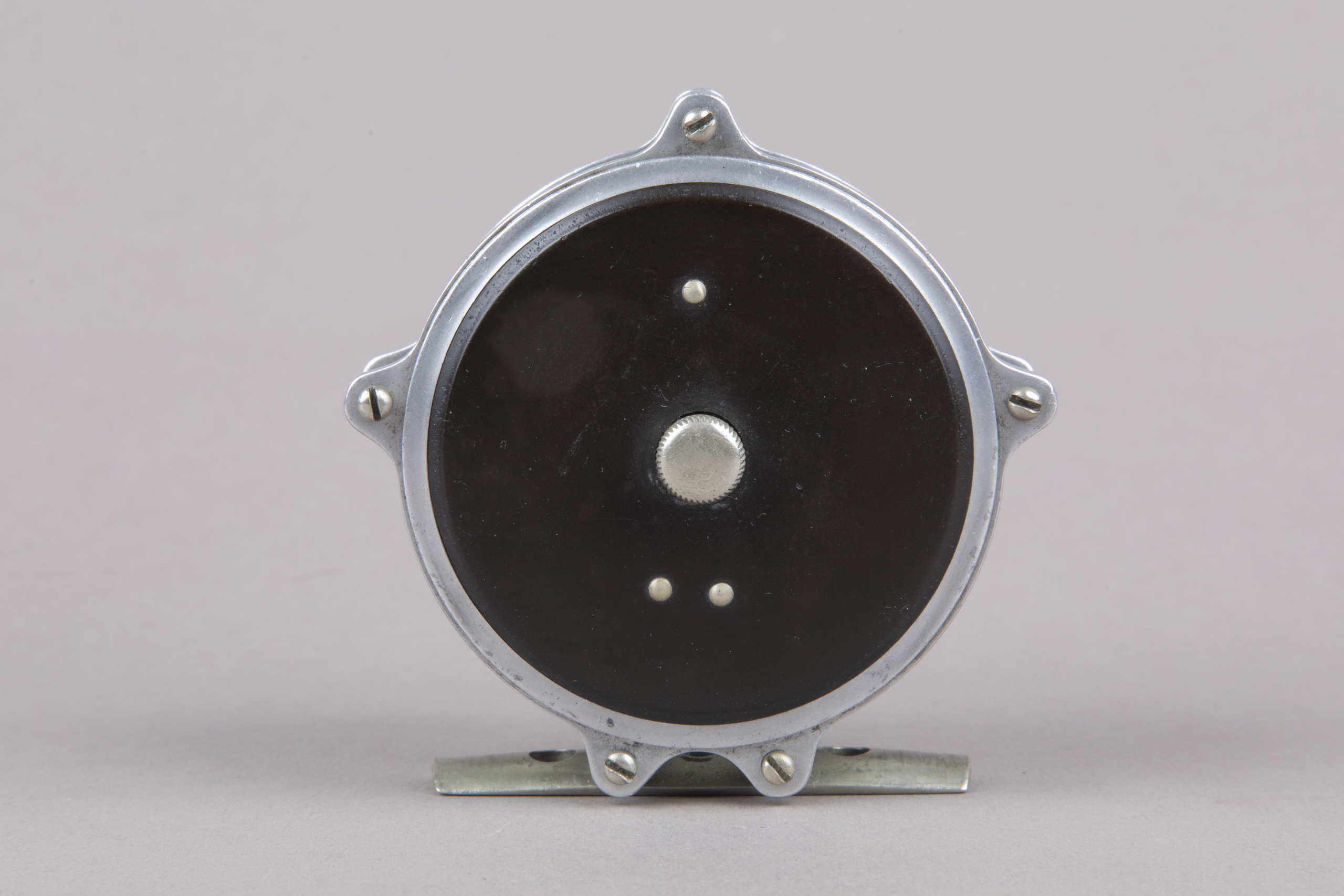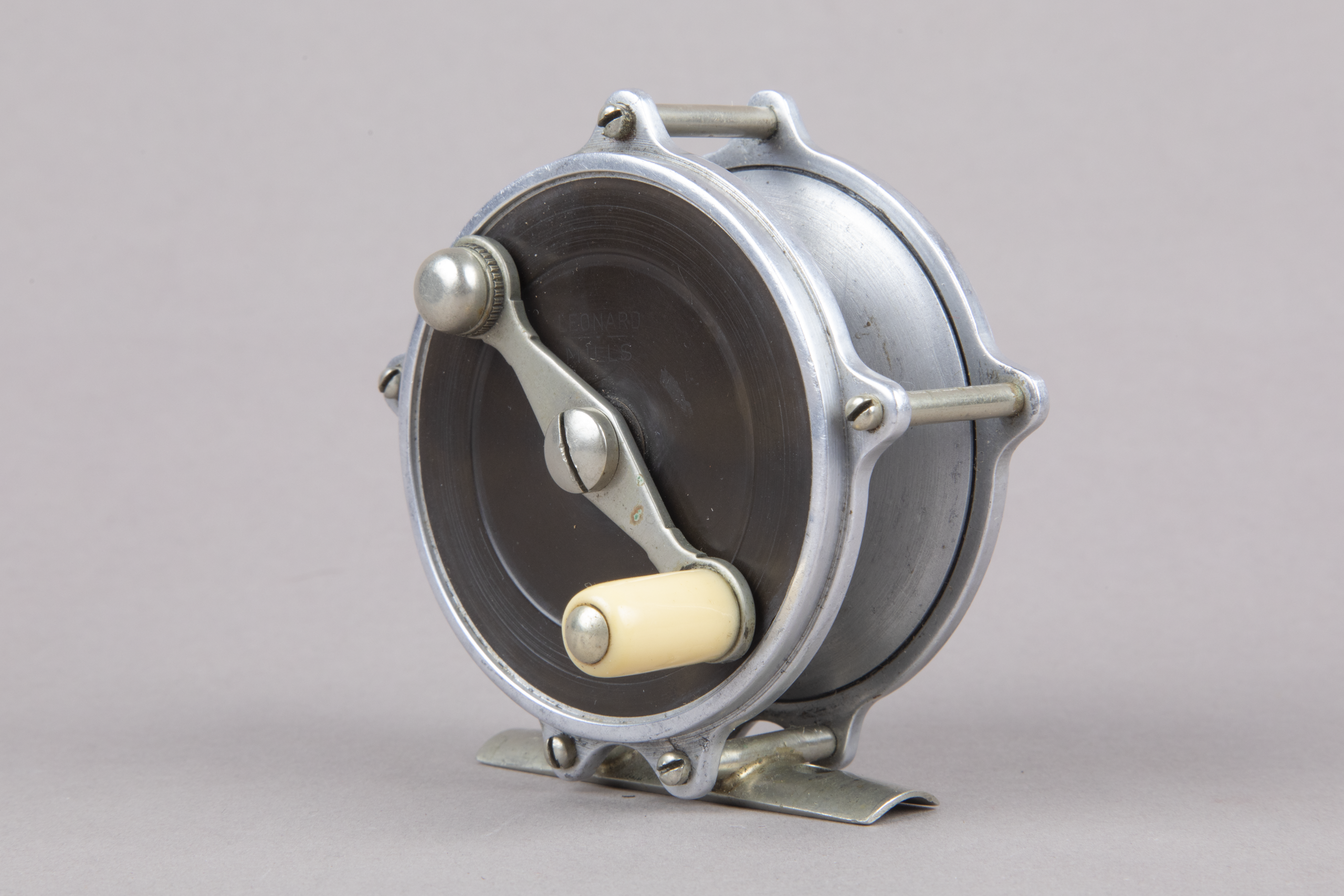 For your consideration is a Leonard-Mills Model 50 raised pillar fly reel. This reel appears to be circa 1930s to early 1950s and made for Mills by Julius vom Hofe. Pillar to pillar the reel measures 3 1/8" and has a rim diameter of 2 5/8" with a frame width of 1 1/4”. The reel weighs 4.80 ounces.
